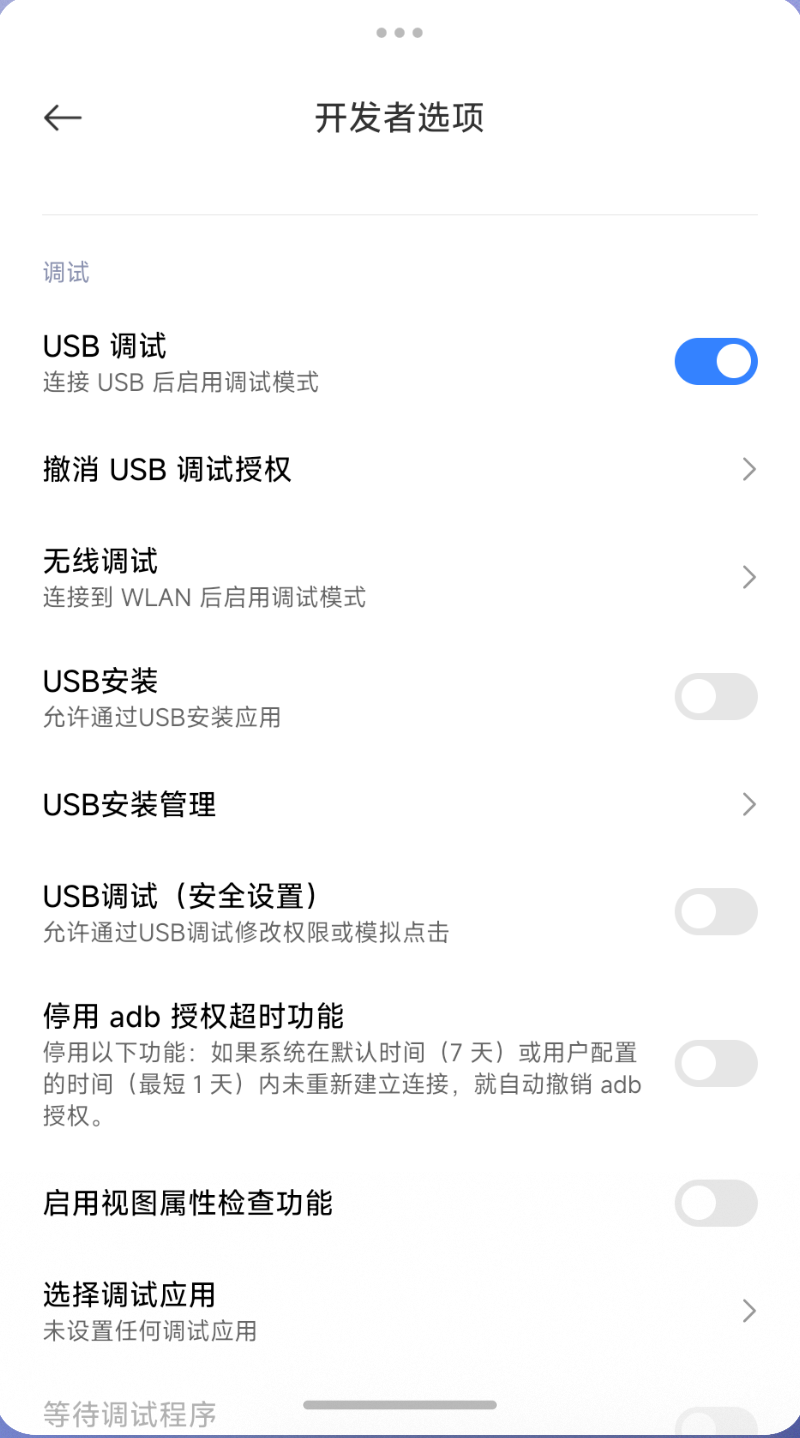 使用数据线,连接安卓设备,设备同意授权被操控,如果没有授权弹窗弹出,则可能需要需要手动授权。进入设备的 设置 -> 关于手机 -> 版本号,连续点击 7 次,直到出现 你现在是开发者 的提示,然后返回上一级菜单,点击 开发者选项,开启 USB 调试。