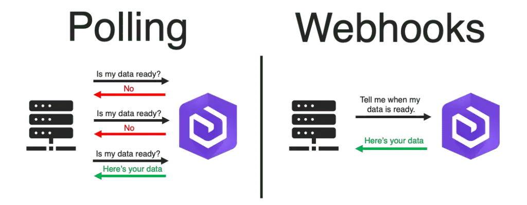 在传统方法中,客户端从服务器请求数据,然后服务器提供给客户端数据(客户端是在拉数据),在 Webhook 范式下,服务器更新所需提供的资源,然后自动将其作为更新发送到客户端(服务器是在推数据)