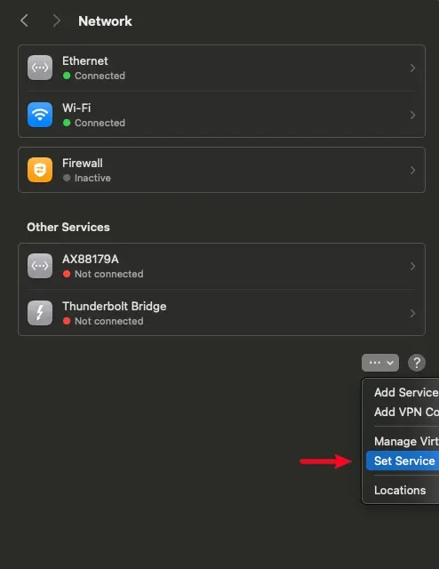我这里 Ethernet 在 Wifi 的上面,所以默认优先使用 Ethernet 上网:
